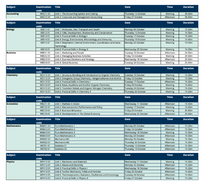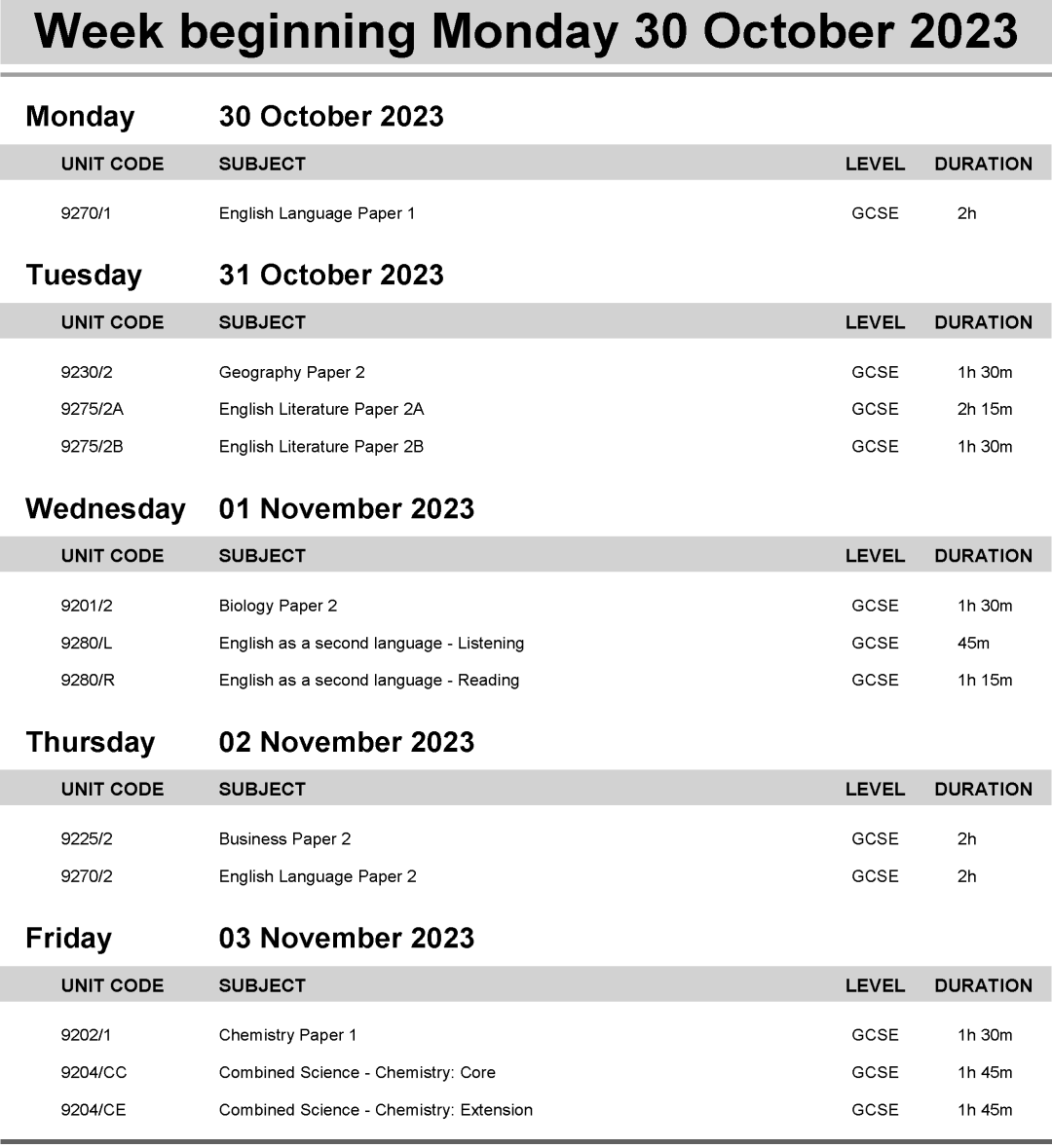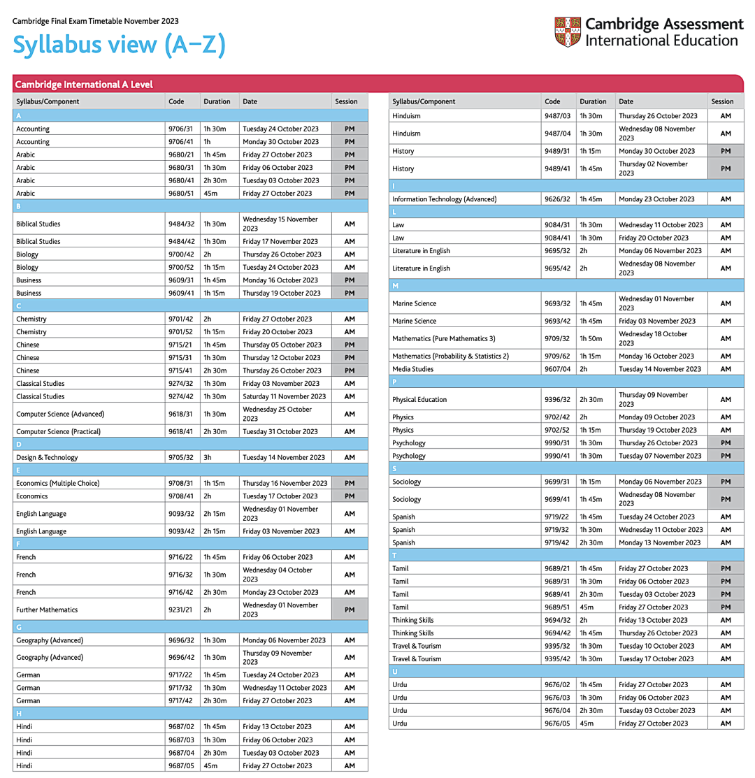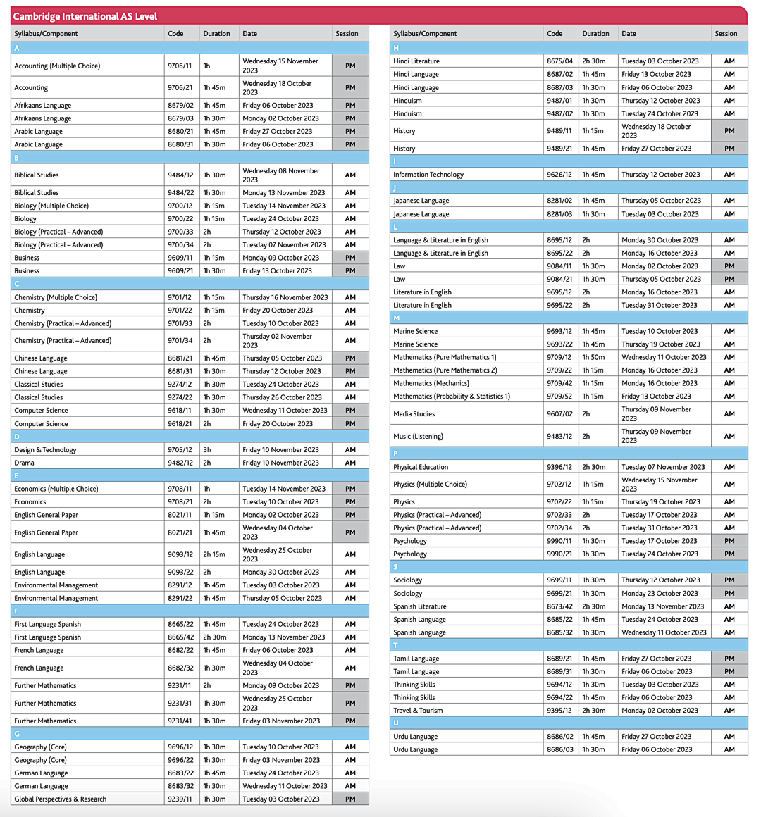 AS/Alevel秋季考试时间:10月9日-10月27日