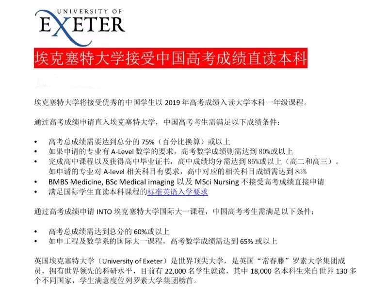 ,最近埃克赛特大学(University of Exeter)也承认中国高考成绩啦!