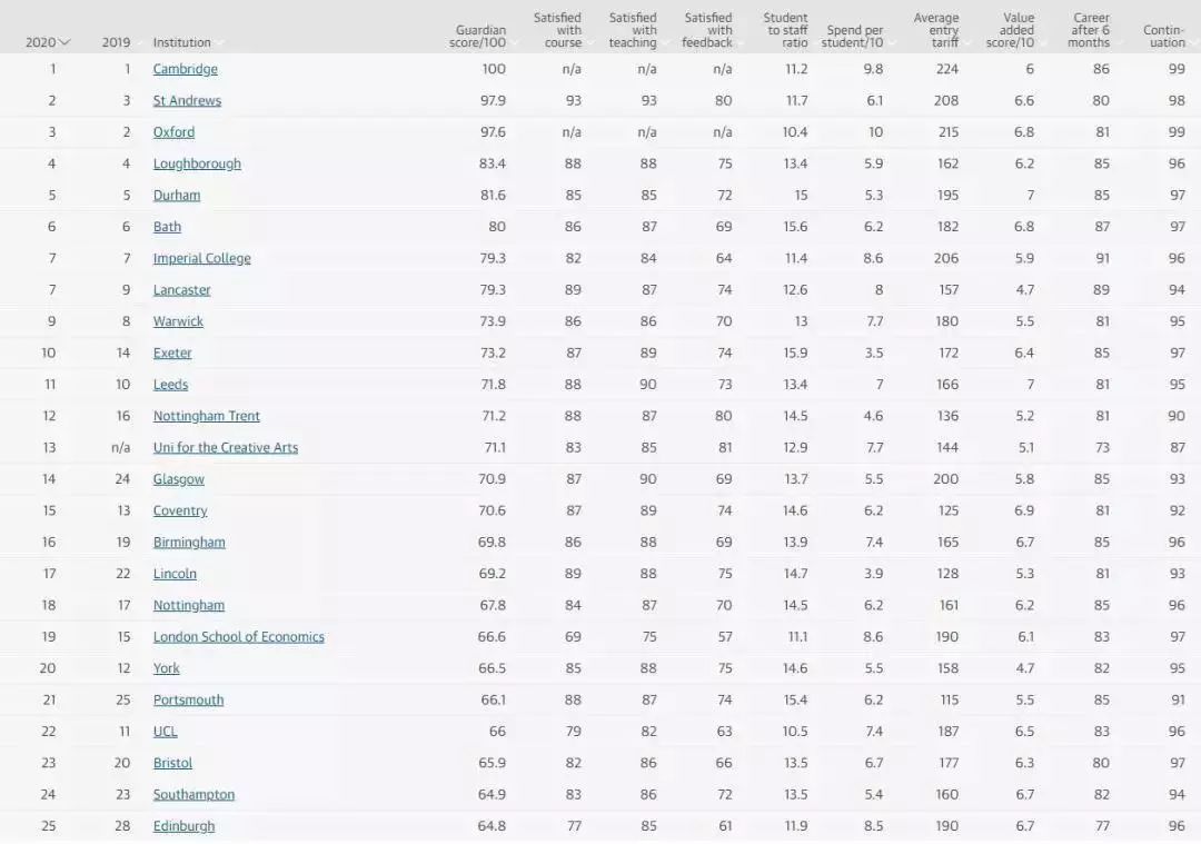 近日,《卫报》(The Guardian) 发布了2020年英国大学排名,震撼众人!英国大学排名主要有以下几个: