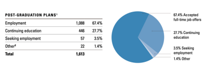 简单说,和美国大多数大学类似,密歇根安娜堡的本科生也是大部分先工作。比如工程学院,67.4%的毕业生先工作了,然后将近30%左右比例的学生深造。
