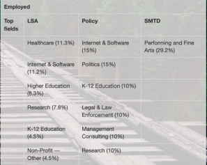 密歇根安娜堡的毕业生就业集中在:健康医疗、互联网、高等教育、研究、K-12教育、计算机科学、机械工程等。