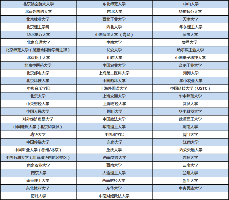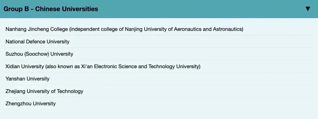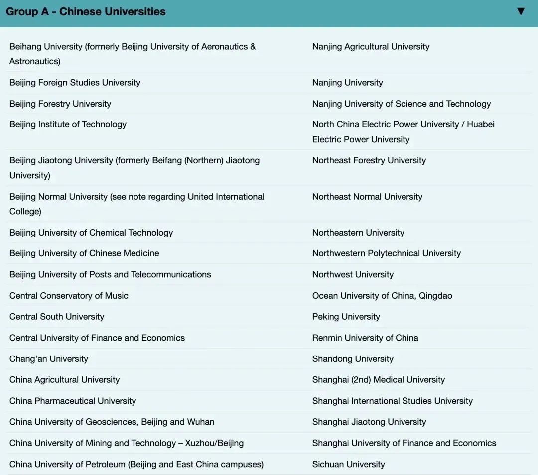 除A组和B组以外,所有受中国教育部认可的其他大学都属于C组。