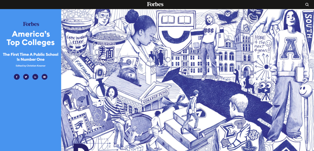 作为美国本土优质榜单之一,《福布斯》排行榜把综合性大学和文理学院混合排名,让申请者能够获得更直观的学校排名参考。