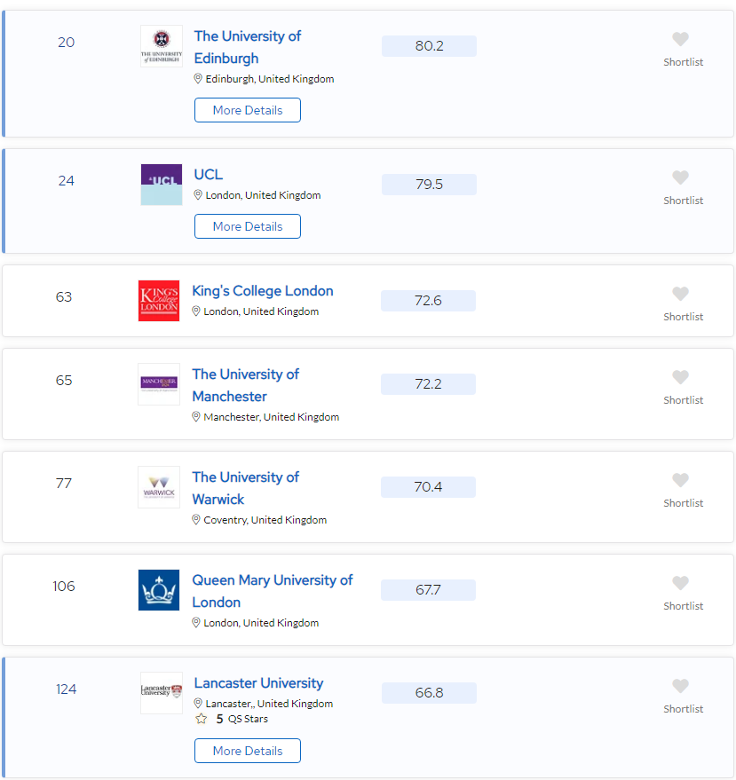 从以上排名来看,G5院校论计算机学科实力,牛津>剑桥>帝国理工>UCL。其中牛津和剑桥在总分上差距很小,两者仅差1.1分,可以说牛剑两所院校的实力几乎不相上下,都是学计算机科学的绝佳选择!
