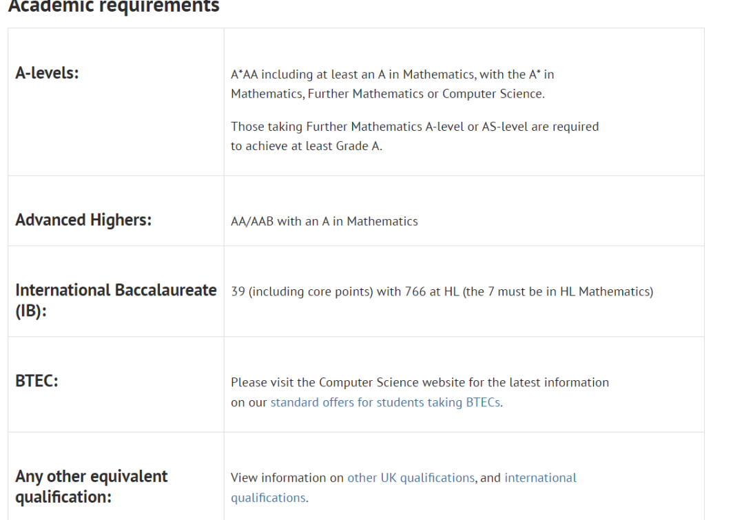 ● A-Levels:A*AA with the A* in Maths,Further Maths or Computing / Computer Science