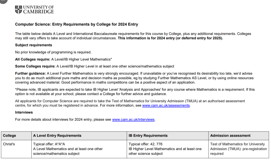 ● 所有申请人都必须在接受面试时参加剑桥大学入学数学考试(CTMUA)
