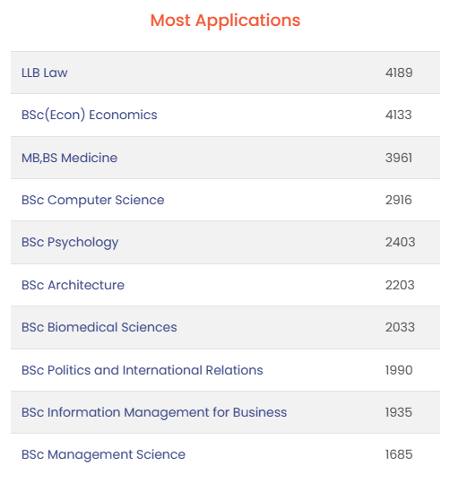 其实,计算机学科一直是英国院校的热门申请学科。除了牛剑以外,UCL、IC的计算机学科专业在每年的申请季都占据当年的申请量的TOP10。