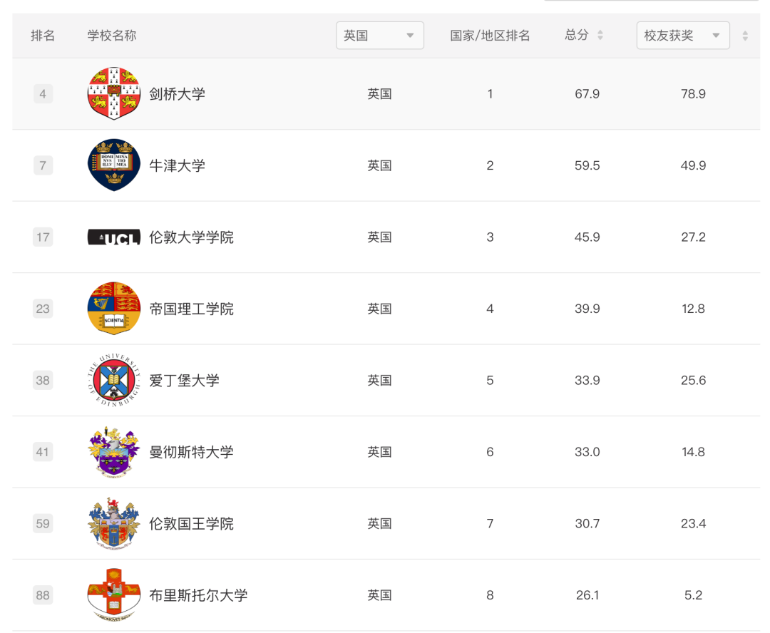 今年英国共64所大学上榜,其中8所大学冲进世界前100,包括: