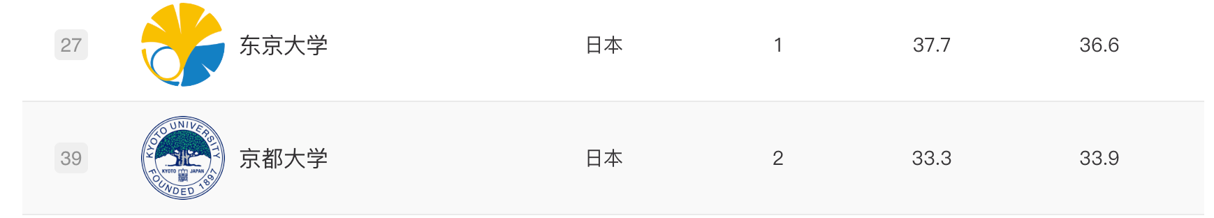 清华大学排名最高,位列全球第22名。北京大学排名上升5名,位列全球第29。浙江大学排名上升3名,位列全球第33。上海交通大学(46名)首次跻身全球50强,