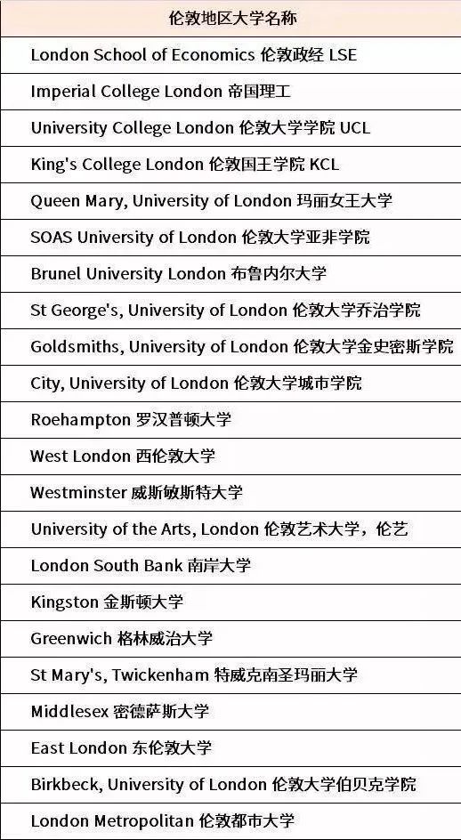伦敦还有一些非综合类的大学,没有出现在上面的榜单中。