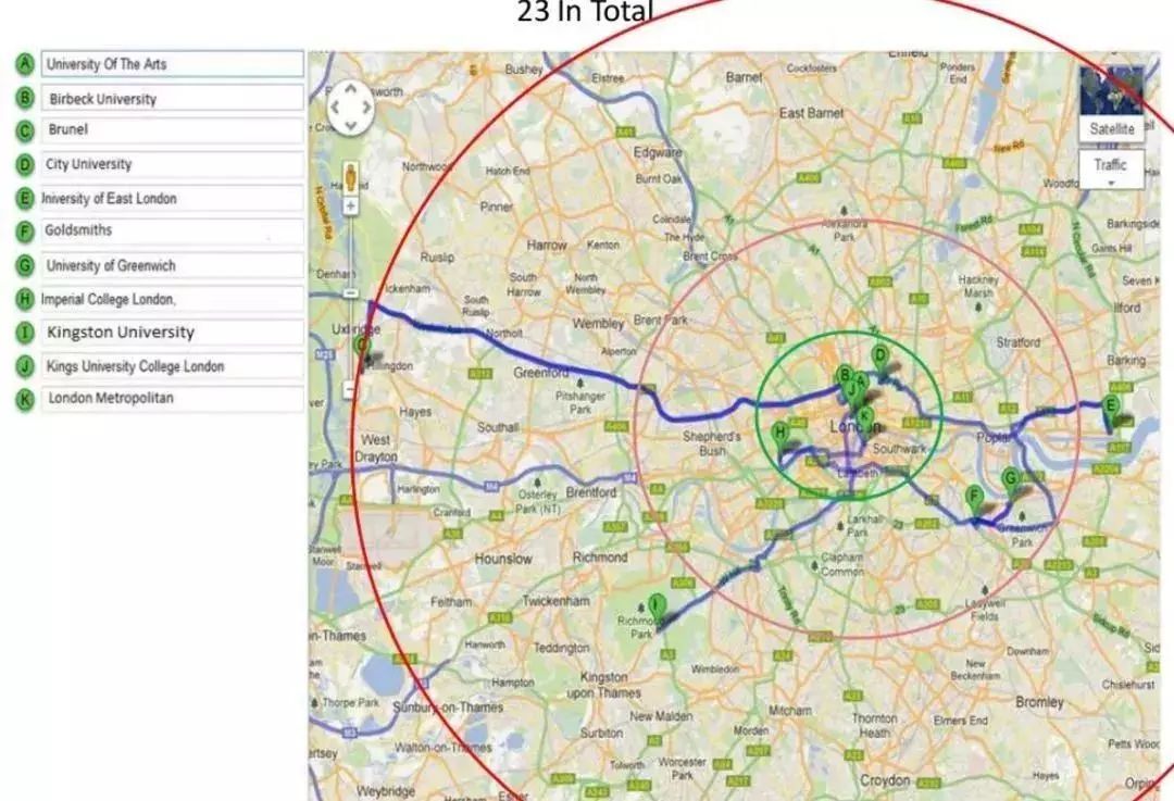 伦敦地区超过一半的大学位于Central London的范围内,如帝国理工、KCL、UCL、LSE、伦敦大学城市学院、威斯敏斯特大学都是在伦敦市区比较中心的位置。
