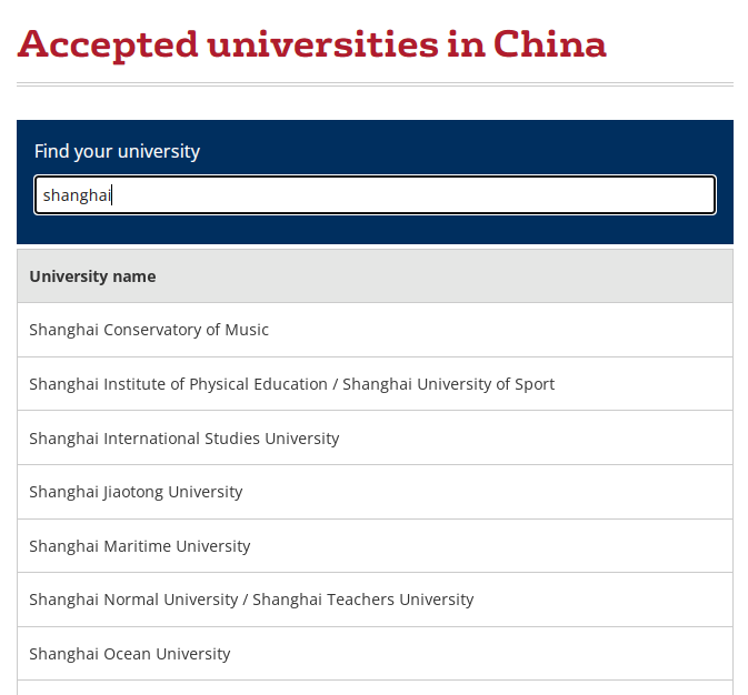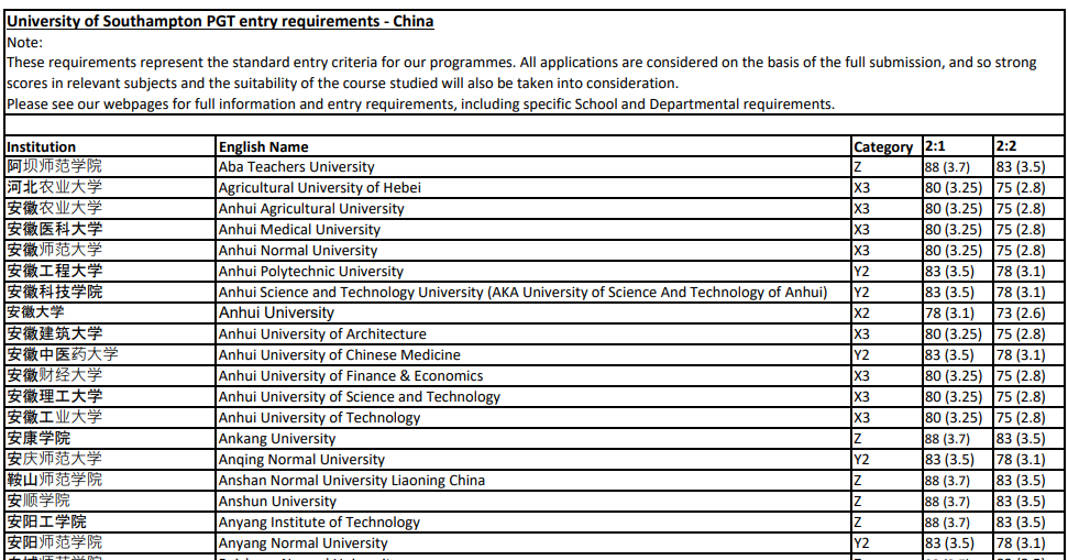 南安也有中国大学认可名单,大致分为六档,每个档对应不同的分数要求,非常的详细。认可名单有非常多双非大学,并且录取的时候有一定弹性,适合高分经历丰富的双非同学申请。