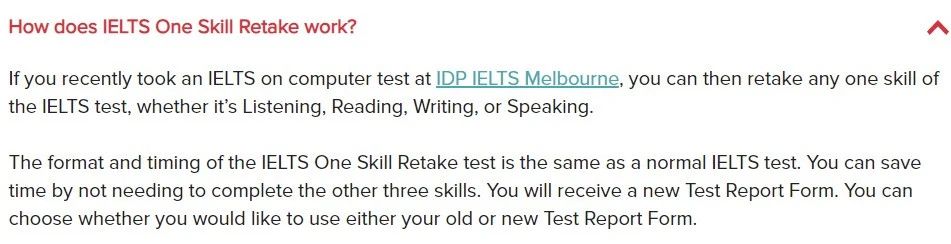 基于该新功能,申请人可以选择重考雅思学术考试中的某一个科目。详细信息如下: