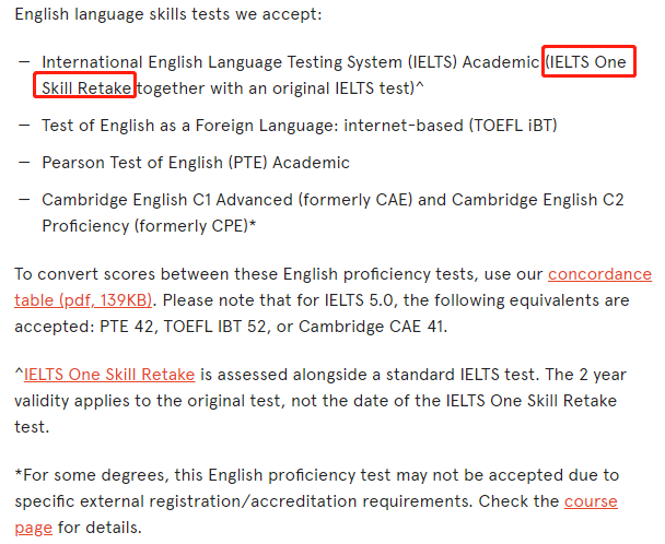但是依旧有些“好心”院校接受雅思单科重考成绩。