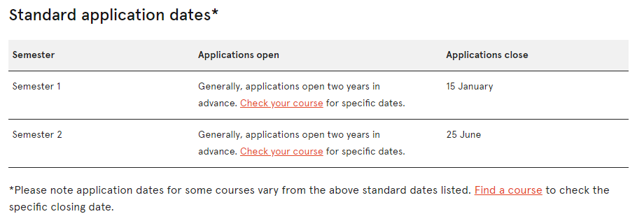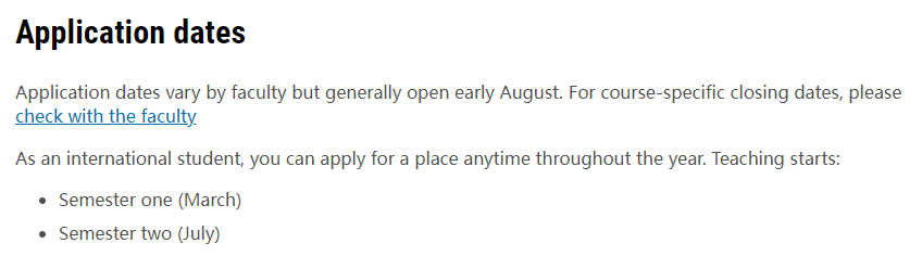 澳洲的大学一般每年有S1(1月/2月)和S2(7月/8月)两个时间段,根据个人和专业情况而定,建议大家一般要提前半年申请。