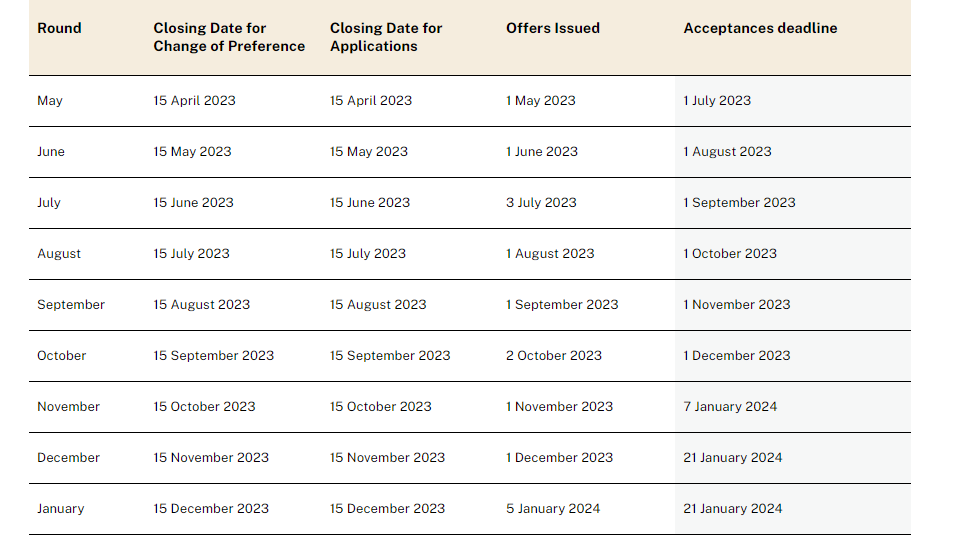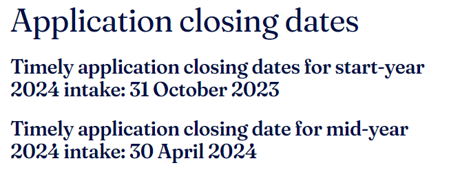 2023年9月30日或者2023年11月30日(不同的专业有不同的截止日期)