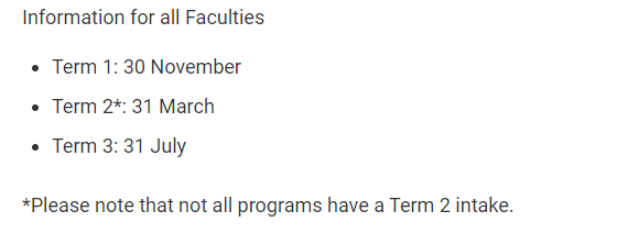 集齐所有申请材料后,就可以开始网申递交申请。尽量在12月前提交申请。澳洲有的大学有配额制度,一旦人满,即使没有到申请截止日期,也会不再受理申请,或将申请延到下个学期受理。