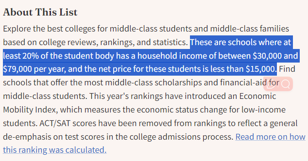 私立精英大学和文理学院对中产家庭有助学金&奖学金的扶持和照顾,因此它们占据着榜单绝大部分席位。