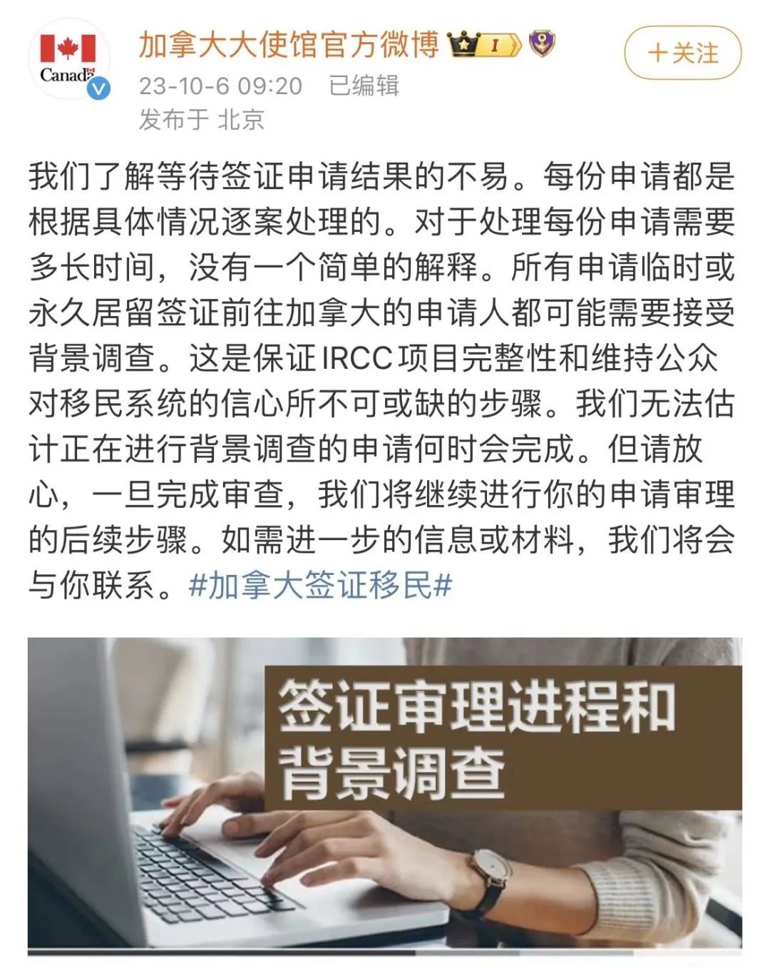近日,加拿大驻华大使馆的官方微博账号发布重要消息,所有申请签证的申请人都可能需要接受背景调查,包括申请临时签证或永久居留签证。