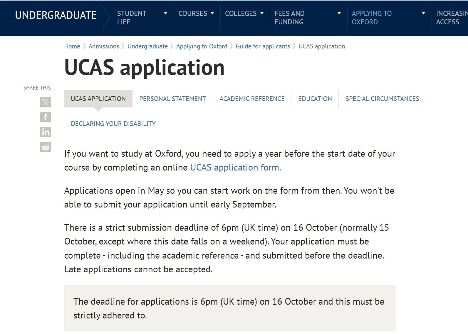 申请者要在10月16日18点(英国时间)之前通过UCAS递交申请。