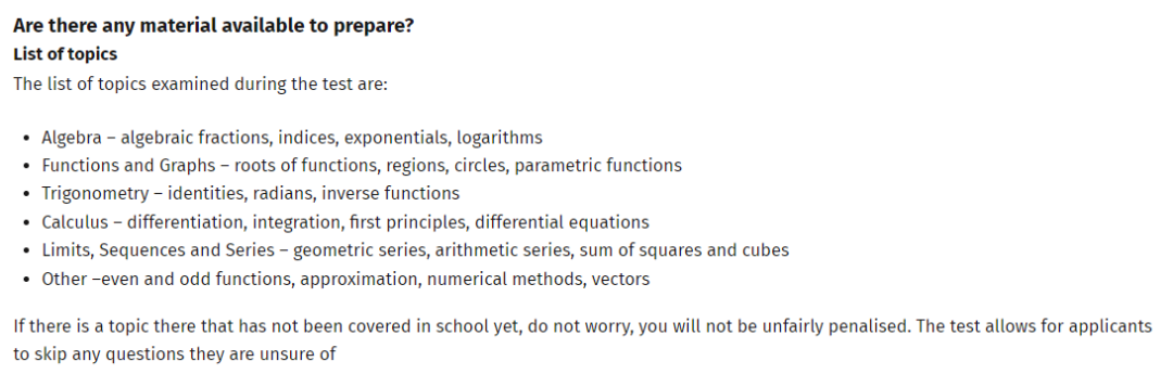 考试内容:校内物理和数学知识,如AS数学和物理难度或其他类似难度等级。