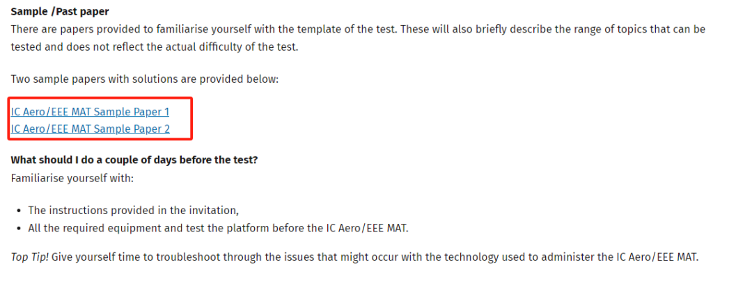 表示只有被邀请的同学,才能参加帝国理工航空工程系入学笔试IC Aero/EEE MAT,该测试一般在11月初和2月初举行。