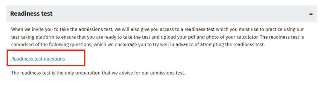 *申请者会在考试开始一周前收到官方邮件通知参加测试~邮件中包括考试形式介绍和practise test,帮助同学在考试前熟悉出题方式。