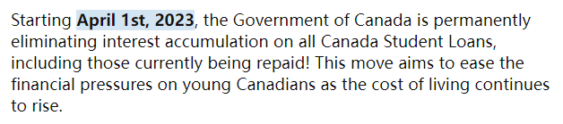 从2023年4月1日开始,这一变化将使加拿大每年超过120万的大专毕业生受益。根据目前的利率,取消利息将为学生贷款者每年平均节省520元。