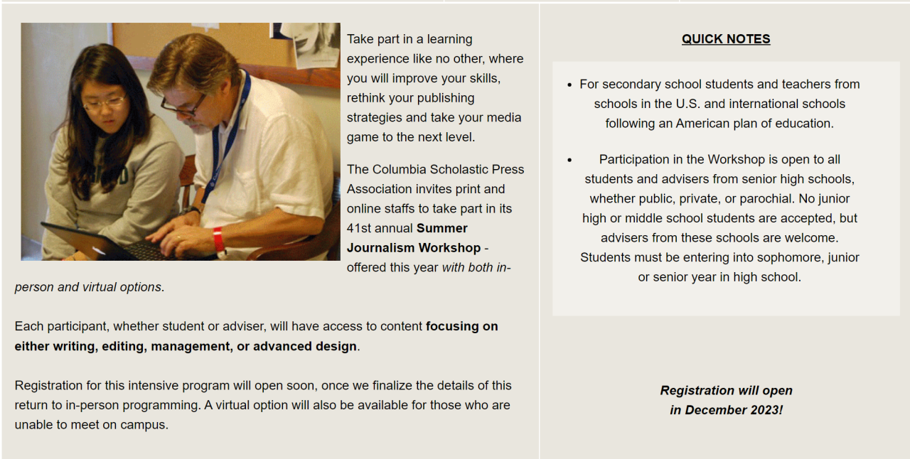https://precollege.nd.edu/leadership-seminars/CSPA' s Summer JournalismWorkshop