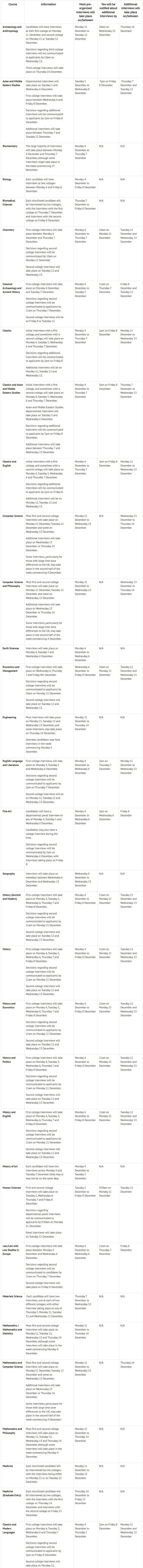 总结了剑桥各个学院的面试时间安排。具体面试时间以面邀邮件为准,此处仅供参考~