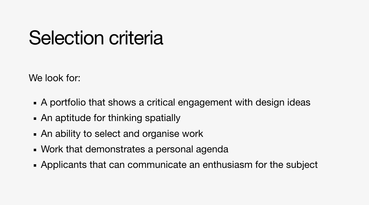 坎伯韦尔室内设计本科专业对作品集的要求,总结下来主要包括: