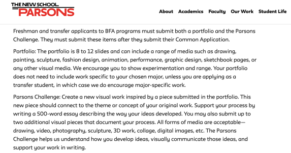除了基础的作品集之外,申请帕森斯的学生还可以选择提交 Parsons Challenge 项目: