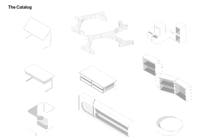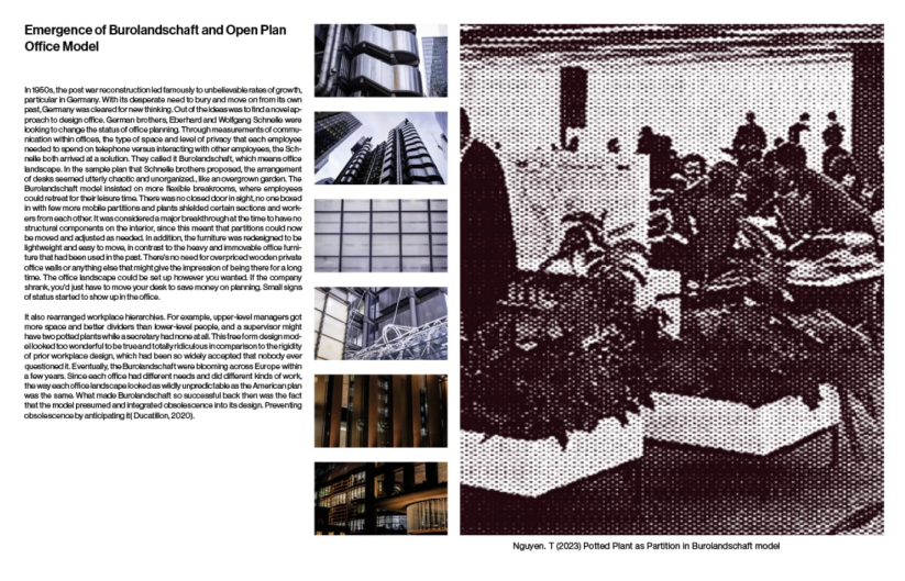 Nguyen 通过调研 Bürolandschaft 的设计理念,巧妙地在模块化办公系统中,利用家具、植物来对办公空间进行分割,