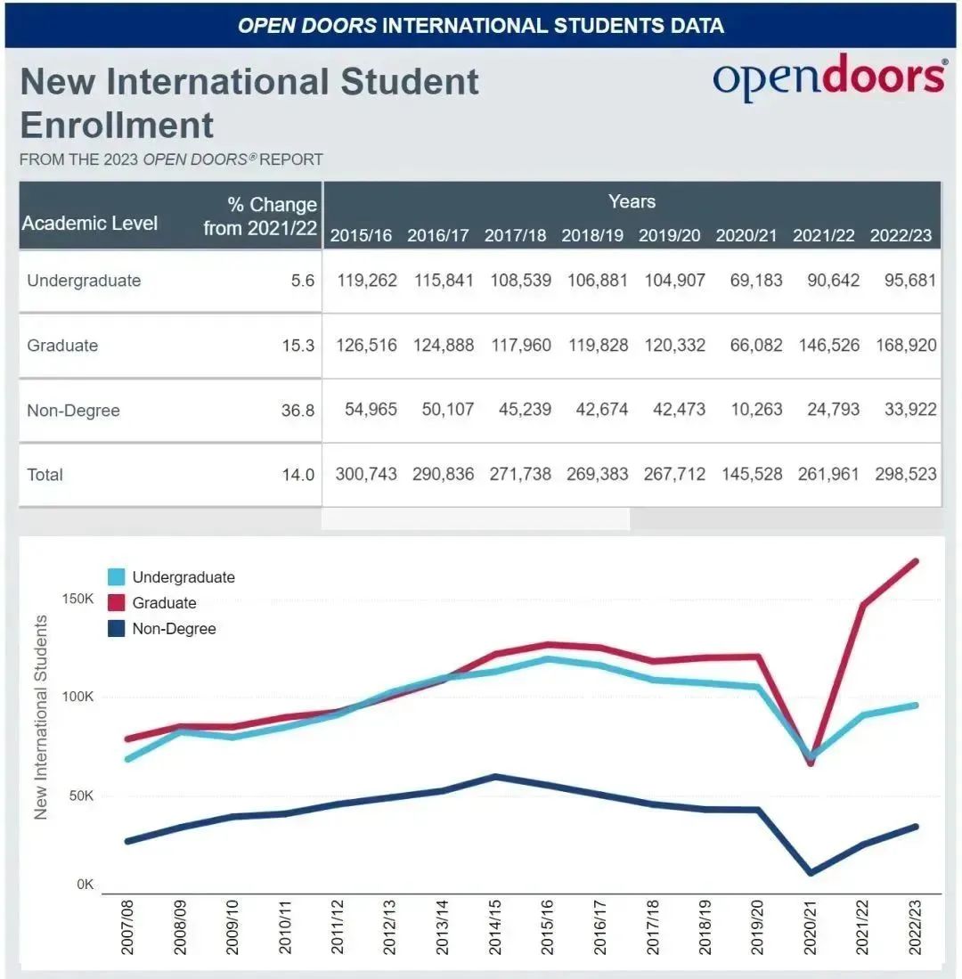 美国当地时间11月13日,美国国际教育协会IIE发布最新的《2023美国门户开放报告》。