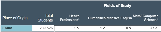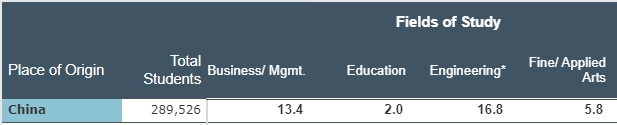 不出意外的是,中国以289,526名学生的数量,连续第14年稳居美国大国际生来源国。