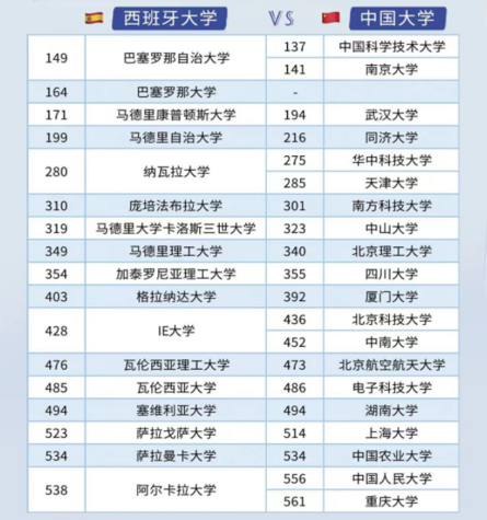 另有10所大学世界排名在500名之内。更重要的是,这些学校对中国学生来说并不难申请。凭借中国大学学历(本科或专科)通过语言预科考试,且西班牙语达到B2即可申请进入西班牙世界知名大学。