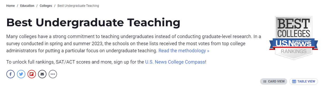 说起USnews排名,大家最关注的莫过于世界大学排名和全美大学排名。不过相较这两个排名而言,还有一个大家可以用来参考的,那就是USnews最佳本科教育排名。