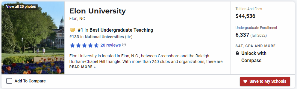 依隆大学(Elon University)又一次摘得了全美第1的桂冠!