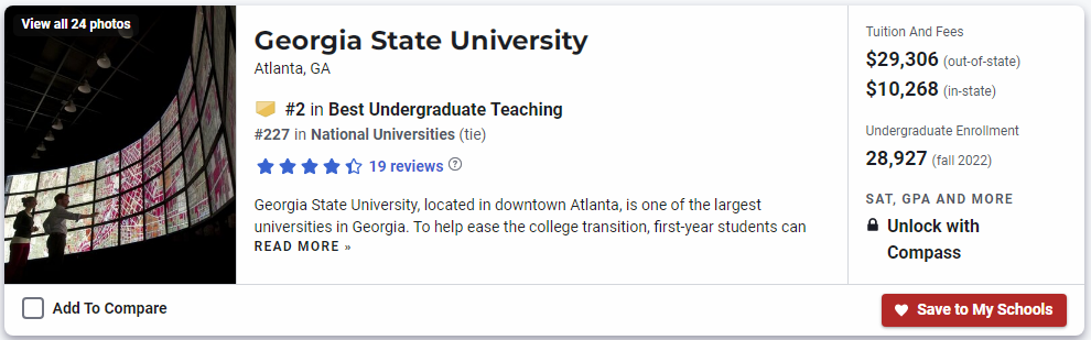 佐治亚州立大学是位于美国南部佐治亚州首府亚特兰大的知名综合性公立大学,距离佐治亚理工学院仅1公里的距离。