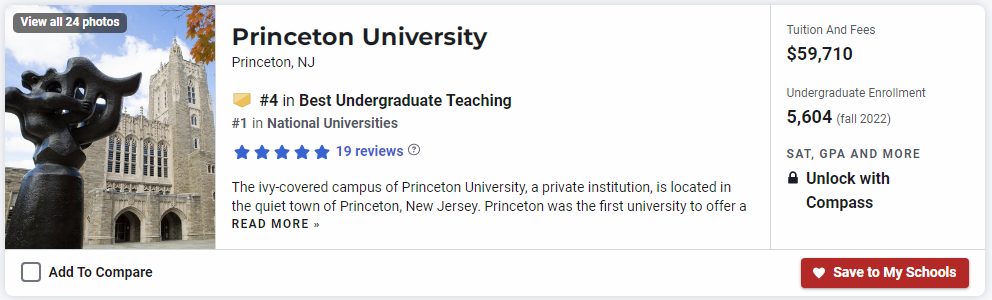 综合大学排名是有绝对实力的。连续多年霸榜U.S.NEWS的普林斯顿大学在本科最佳教学排名上也是榜首的位置。普林斯顿大学是世界知名私立研究型大学,位于美国东海岸新泽西州的普林斯顿市,是美国大学协会的14个始创院校之一,也是知名的常青藤联盟成员。