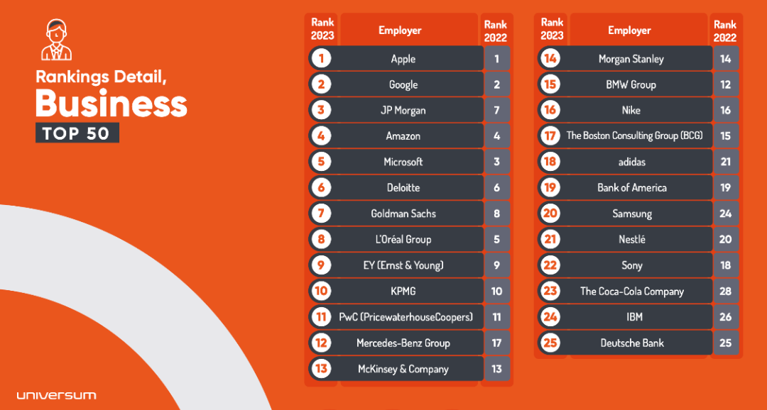 知名雇主品牌调研机构Universum(优兴咨询)发布了第15份年度《全球最具吸引力雇主》报告。
