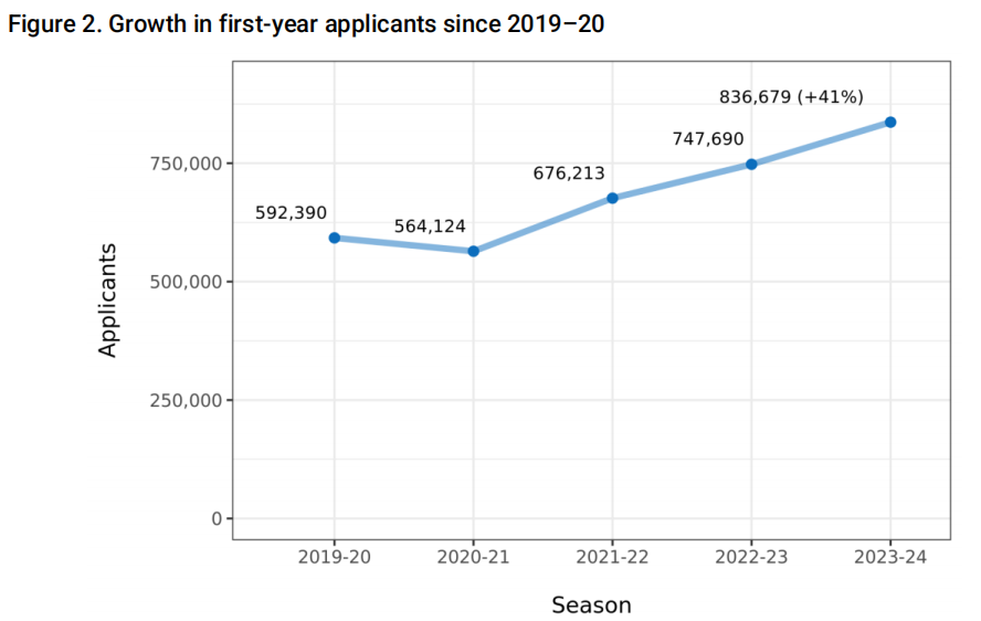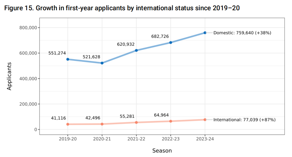 首先,年注册CA账户的人数多达1,862,719人,同比疫情前的2019-2020申请季增长36%,同比上一申请季增长11%。