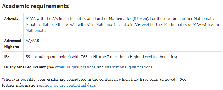 A-Level成绩要求:A*A*A,申请者要求学习数学和进阶数学