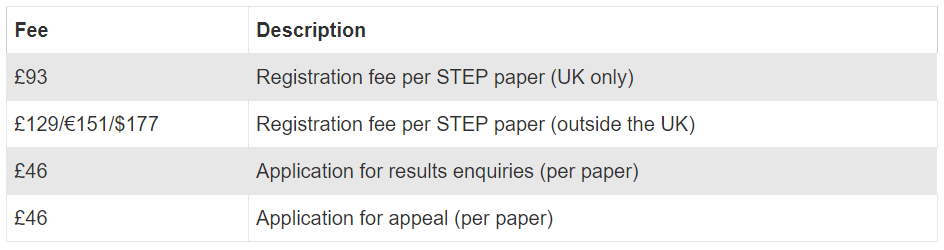 129英镑/151欧元/177美元:英国以外STEP每卷报名费