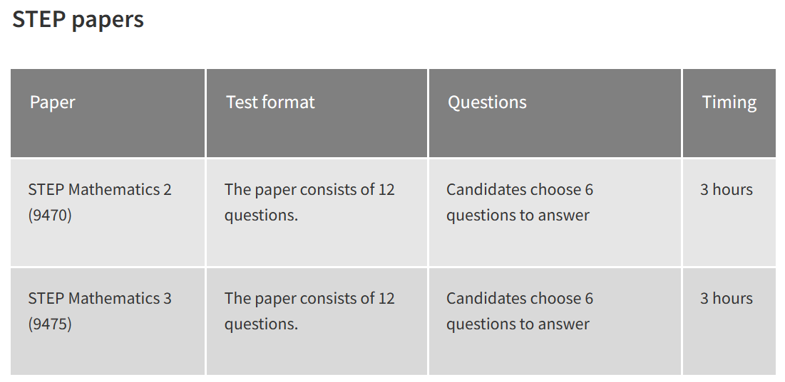 STEP(Sixth Term Examination Paper)是剑桥大学提供的入学附加考试,主要以笔试的方式测试申请者的数学能力,是剑桥和其他一些大学数学和相关学位申请者有条件录取的一部分。STEP考试因其高难度而闻名,人称“剑桥数学系offer杀手”。