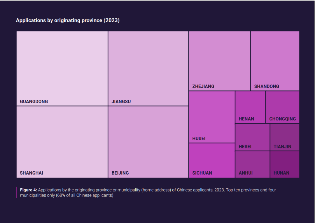 2023中国申请者主要申请区域分布 | 图源:UCAS