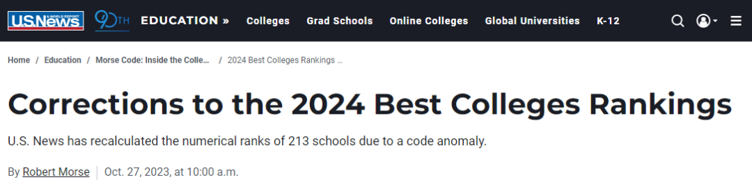 U.S.News官网宣布:今年不会发布2024全球大学排名!