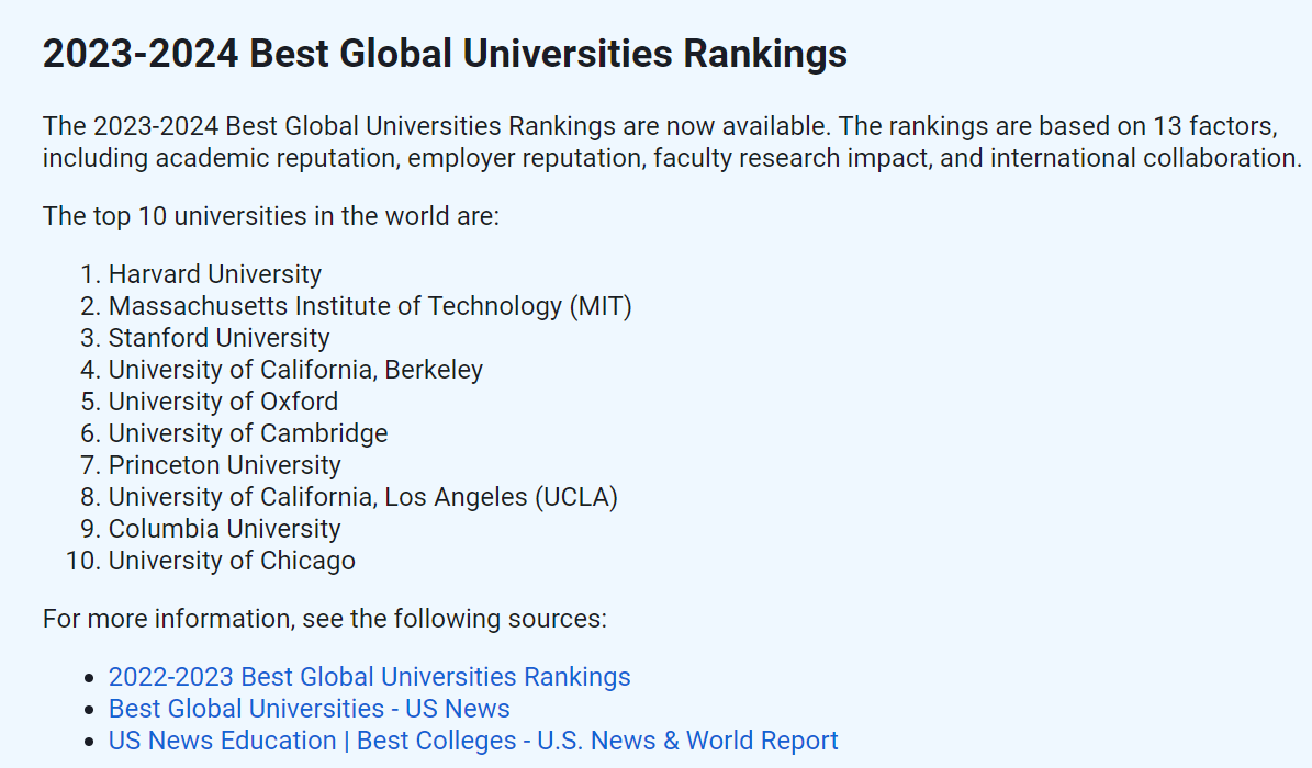目前的情况是,U.S. News表示2023-2024年全球最佳大学排名已发布!