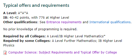 此前有Computer Science, Mathematics, Mathematics and Computer Science, Mathematics and Statistics四门课程适用于“standard level”标准;其他所有课程均采用“higher level”标准。