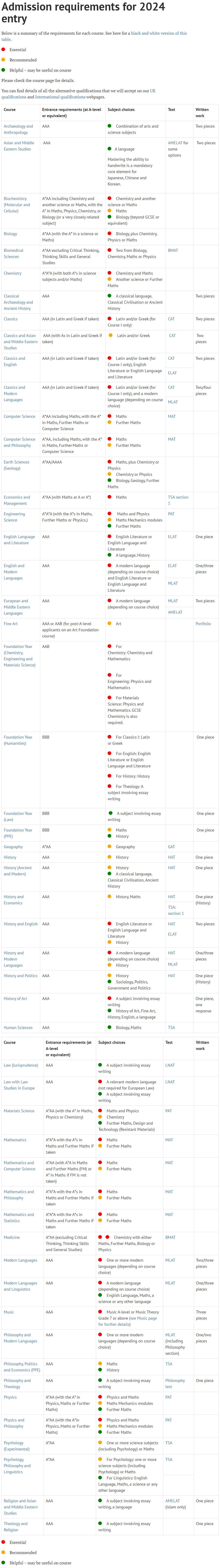 专业选课要求,也需要以具体课程页面查询为准,牛津还给出了一份总的名单,按照重要等级红色(必选)、黄色(推荐)、绿色(有帮助)来给出选课建议。